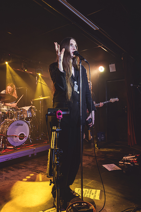 La banda a nivel instrumental es alucinante. Sólo por la base instrumental que tejen entre ese extraordinario bajista que es Lewis Maynard y el batería Nick Buxton, ya te quedas boquiabierto, pero si a eso añadimos las afiladas y agresivas guitarras que Tom Dowse, con cara de fiera, va escupiendo desde su esquina, nos encontramos a una de esas formaciones que es difícil pasar por alto, por mucho carisma que tenga, como es el caso, su front-woman.